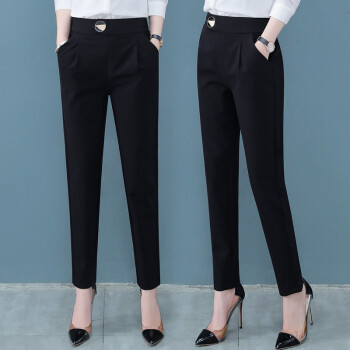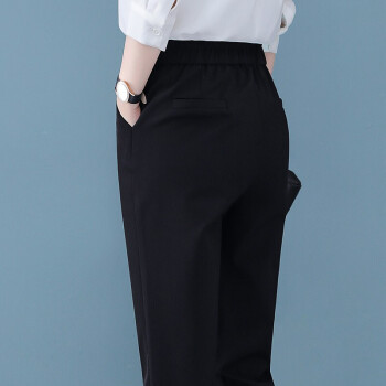 茉玥女裤松紧腰休闲裤女夏季薄款气质宽松大码女装小脚裤韩版九分裤女士夏装黑色裤子哈伦裤 黑色 请拍下正确尺码 |