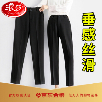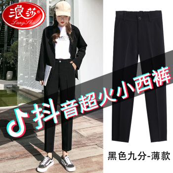 浪莎休闲裤女薄款夏季九分西装哈伦裤子宽松高腰工作直筒女裤 黑色 XL |