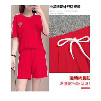 珝嬛短裤女运动套装女夏新款时尚宽松韩版减龄遮肚学生短袖t恤热裤跑步两件套大码女装休闲裤女夏潮 红色 此码勿拍.请拍自身对应码数 |