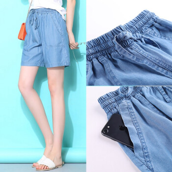 俪缨短裤女天丝牛仔五分裤女新款学生休闲宽松外穿夏季薄款女士冰丝裤子松紧腰薄款垂坠阔腿裤女 图片色 L(建议110-120斤) |