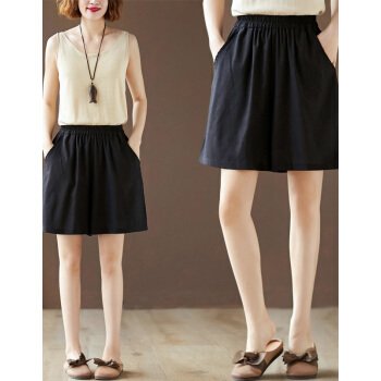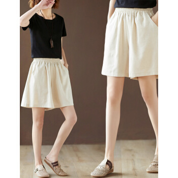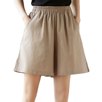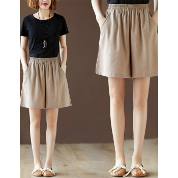 龙芝美 短裤女夏季新款复古亚麻宽松大码百搭显瘦刺绣棉麻阔腿五分裤女 XJM2FB078-6866-卡其色 XL |