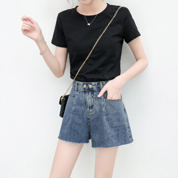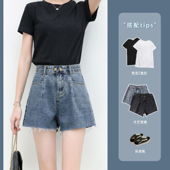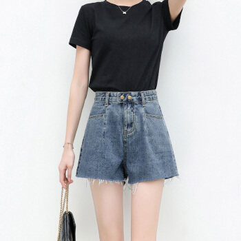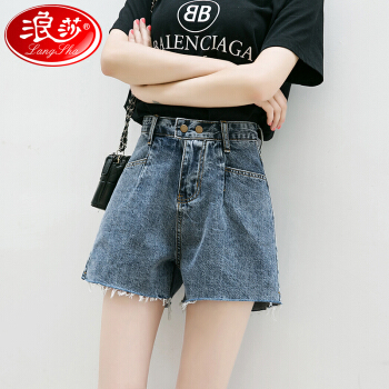 浪莎牛仔裤短裤女高腰热裤显瘦显高外穿韩版a字夏季薄款宽松热裤潮 复古蓝经典款 26 |