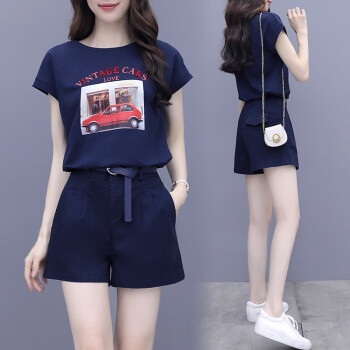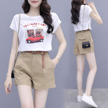 思语林 短裤套装女夏季新款时尚洋气减龄气质小个子T恤休闲职业两件套女 白色套装 M |
