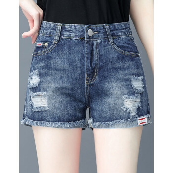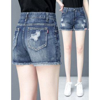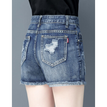 芳帛牛仔短裤女夏季薄款新款松紧高腰显瘦百搭休闲破洞宽松a字阔腿热裤 554蓝色 28 |