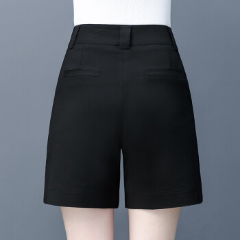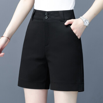 吧吆吆白色短裤女夏宽松新款高腰直筒西装五分中裤显瘦阔腿休闲裤薄 黑色 XL |