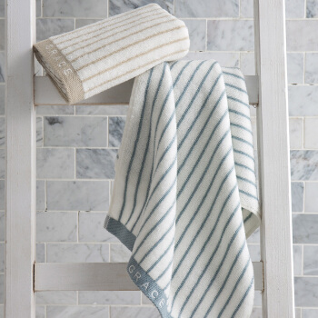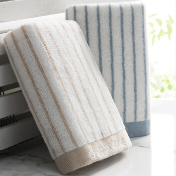 洁丽雅(Grace)毛巾家纺 经典条纹系列纯棉强吸水毛巾 二条装 兰/棕 72*34cm |