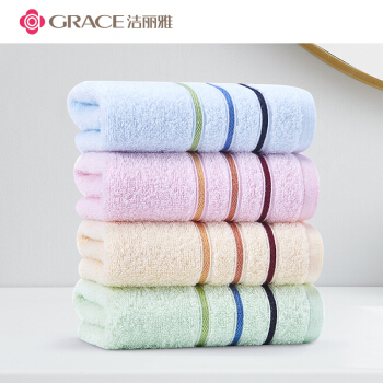 洁丽雅 Grace 纯棉舒适毛巾 多彩洗脸巾柔软吸水全棉情侣洗脸缎档条纹超值毛巾二条装 |