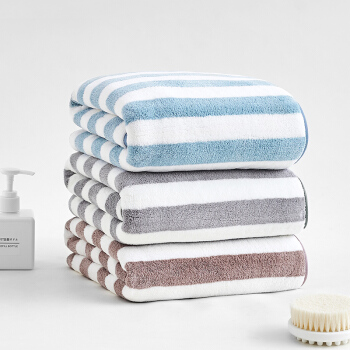 三利 柔软吸水速干大浴巾 条纹洗澡巾裹身巾 70*140cm 浅蓝色 |