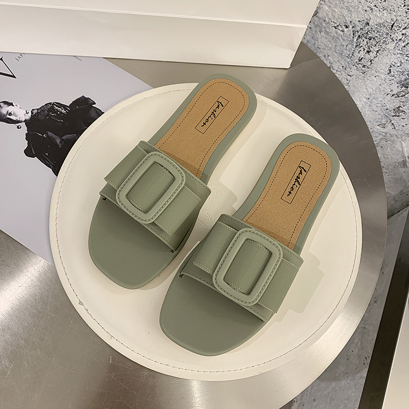 时尚方扣小清新风简约舒适柔软一字凉拖鞋【PVC/绿色】 |