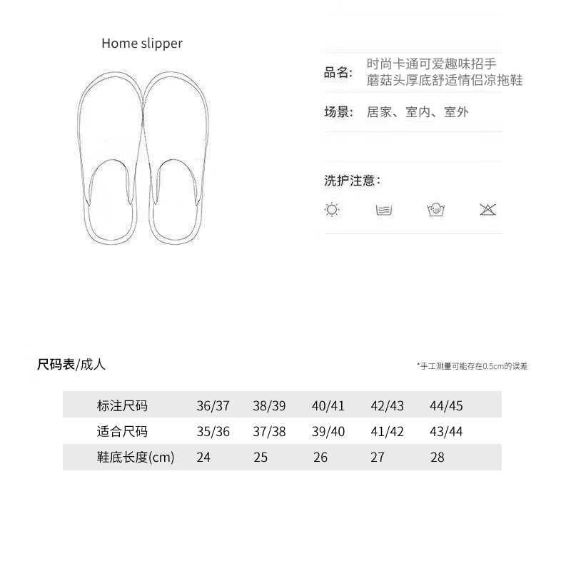 时尚卡通可爱趣味招手蘑菇头厚底舒适情侣凉拖鞋【pvc/西瓜红】 |