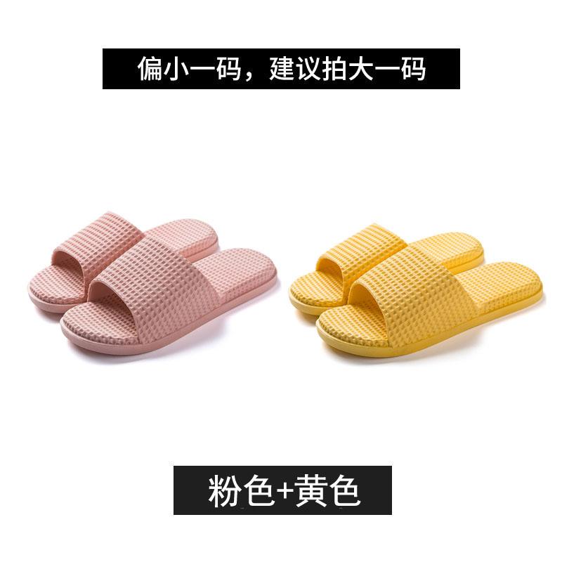 纯色华夫格浴室居家PVC凉拖鞋两双装【PVC/浅粉+黄色】 |