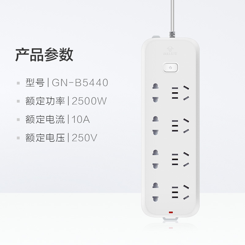 【超值单品】公牛插座GN-B5440插排8插位接线板排插电插板长线拖线板多孔通用【PP/白色】 |