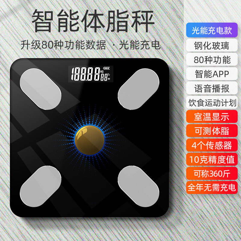 【超值单品】多功能体脂称USB充电太阳能充电两用【钢化玻璃/高贵黑】 |