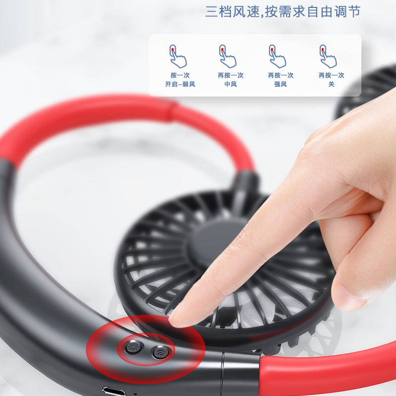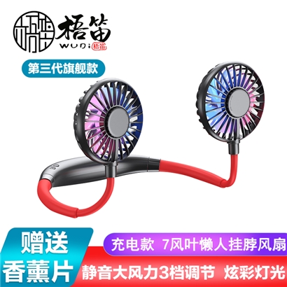 【超值单品】【带彩灯+香薰】第三代旗舰款7叶片挂脖风扇USB充电型【塑料+硅胶/黑红色】 |