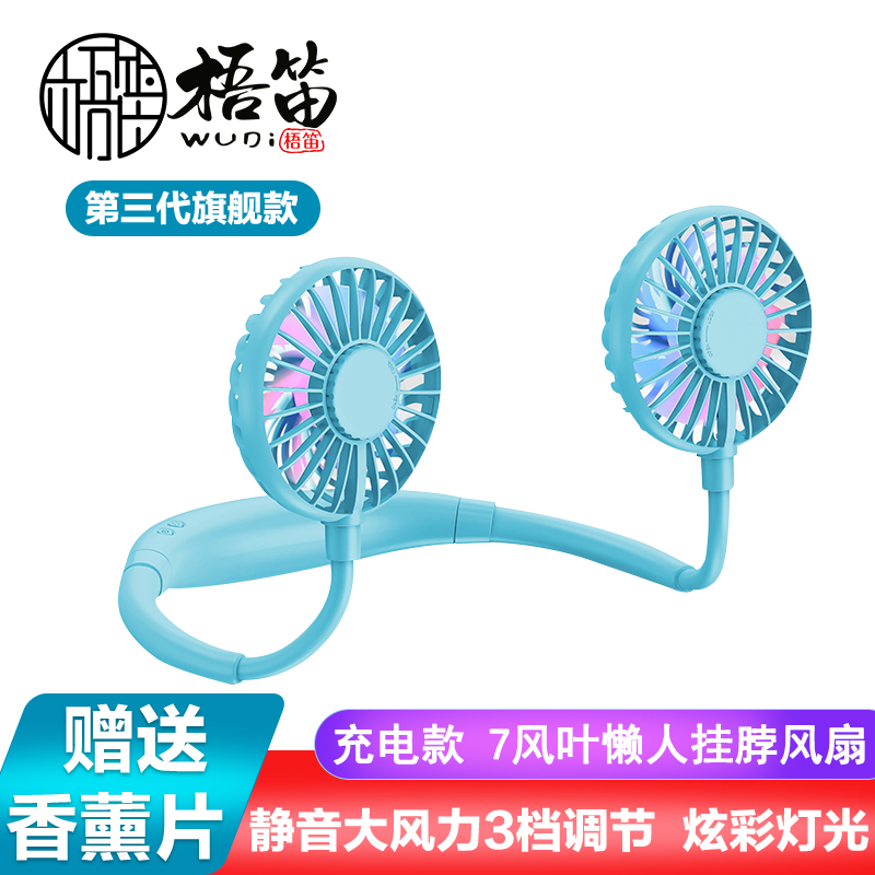 【超值单品】【带彩灯+香薰】第三代旗舰款7叶片挂脖风扇USB充电型【塑料+硅胶/蓝色】 |