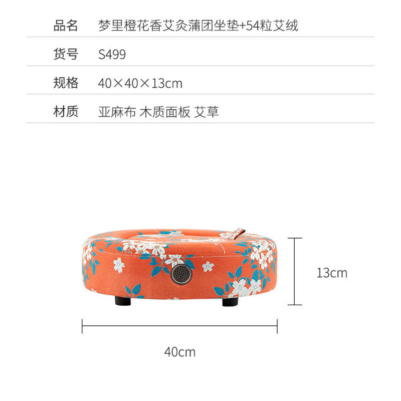 梦里橙花香艾灸坐垫蒲团垫+54粒艾绒【纯棉老粗布 木质面板 艾草/花色】 |