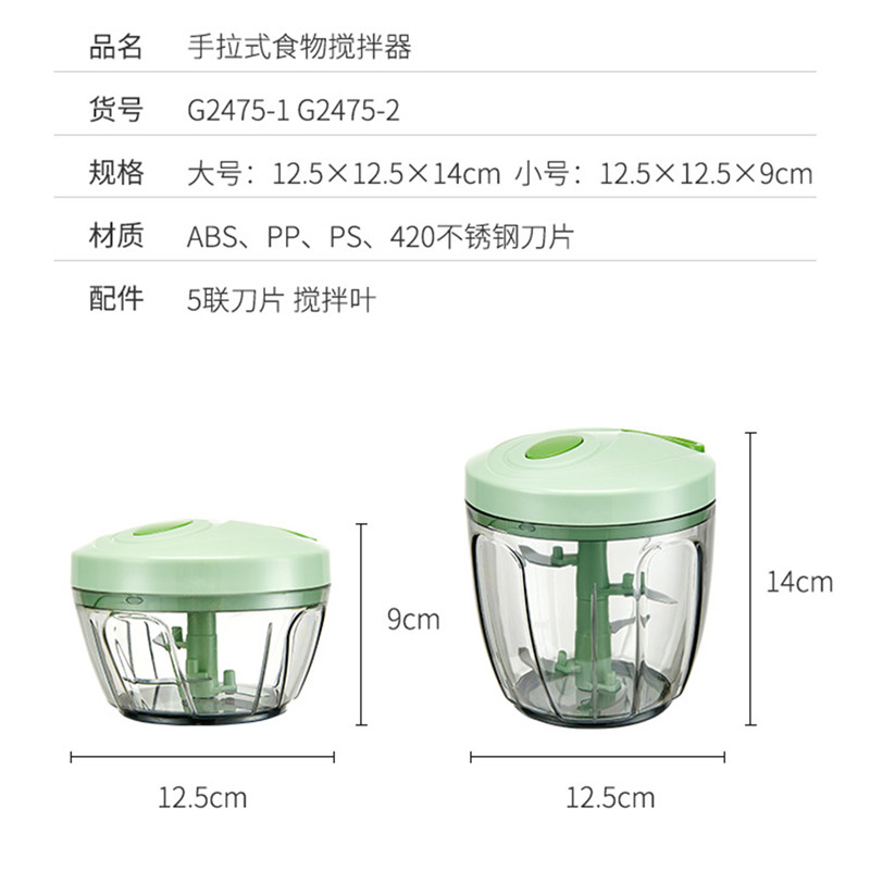 大号绿色手拉绞肉器【ABS PP PS 420不锈钢刀片 配件:5联刀片 搅拌叶/绿色】 |