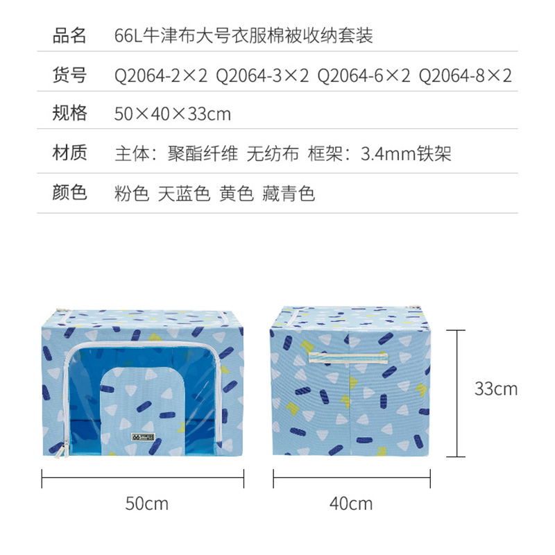 家用礼花碎片600D牛津布收纳箱66L2个装【主体:90%聚酯纤维 10%无纺布 框架:3.4mm铁架/图片色】 |
