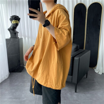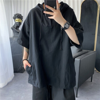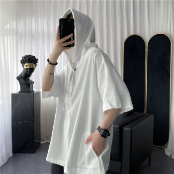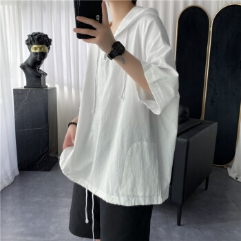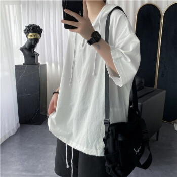 擒旗 卫衣男夏季新款韩版宽松时尚男士连帽短袖卫衣港风薄款青少年百搭潮牌情侣男上衣LZX 白色 M(建议94-110斤) |