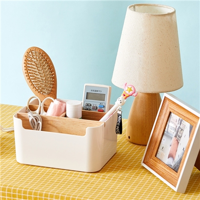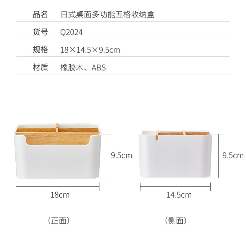 日式桌面多功能五格收纳盒【橡胶木 ABS/白色】 |