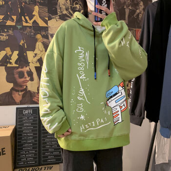 潮备 街头潮牌宽松嘻哈卫衣男士连帽衫青少年韩版秋季新款情侣原宿百搭外套 牛仔蓝 M |