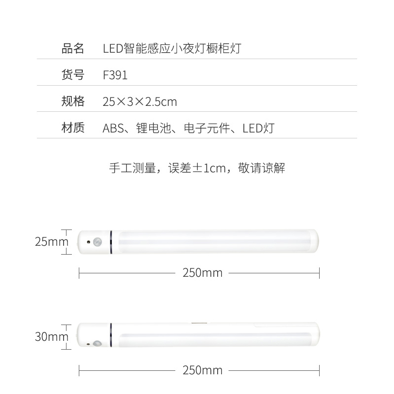 LED光控体感旋转式两用柜灯【ABS 锂电池 电子元件 LED灯/白色】 |