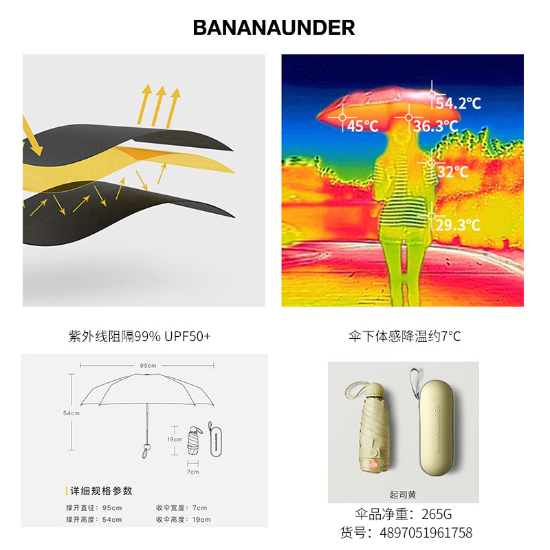 便携折叠遮阳伞【伞布: 聚酯纤维伞杆材质: 铝合金/起司黄】 |