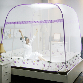 九洲鹿 蚊帐家纺 免安装方顶蒙古包三开门蚊帐有底拉链钢丝可折叠 雪绒花 紫 1.8米床 |