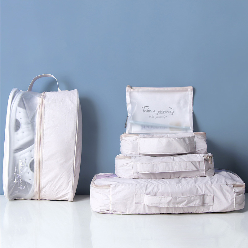 旅行收纳套装五件套防水洗漱包衣物整理【高密度聚乙烯/米色】 |