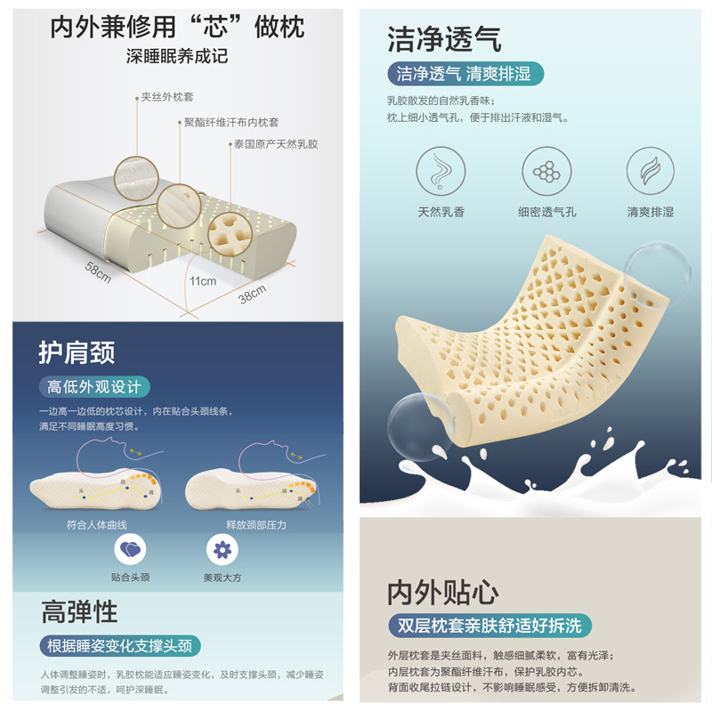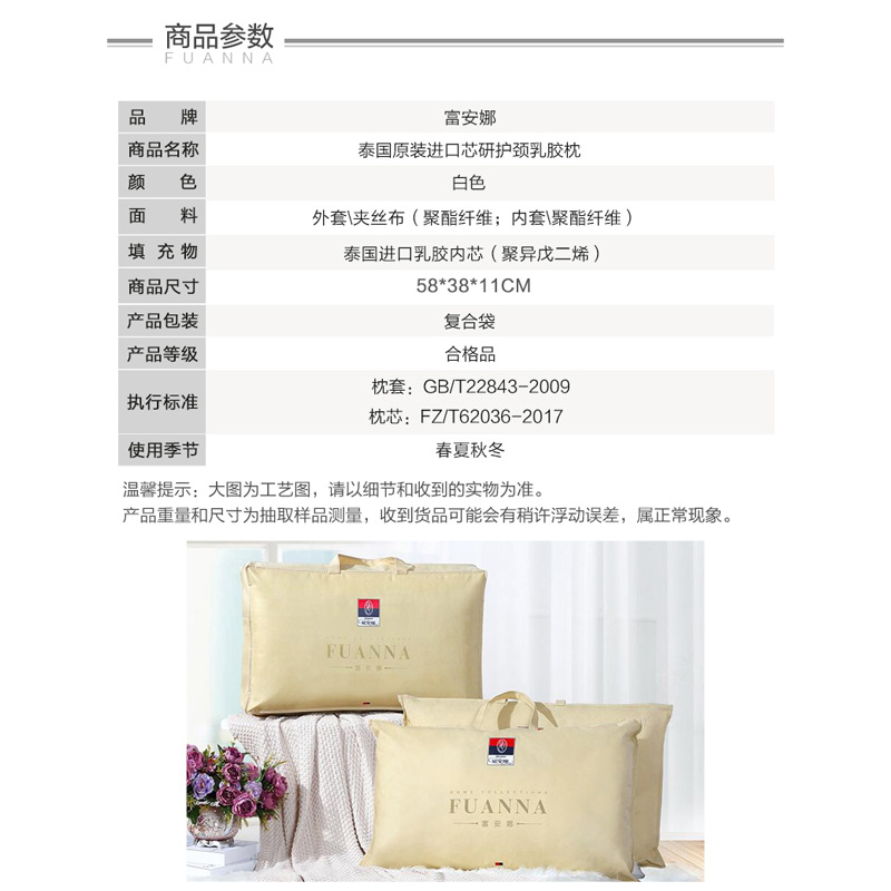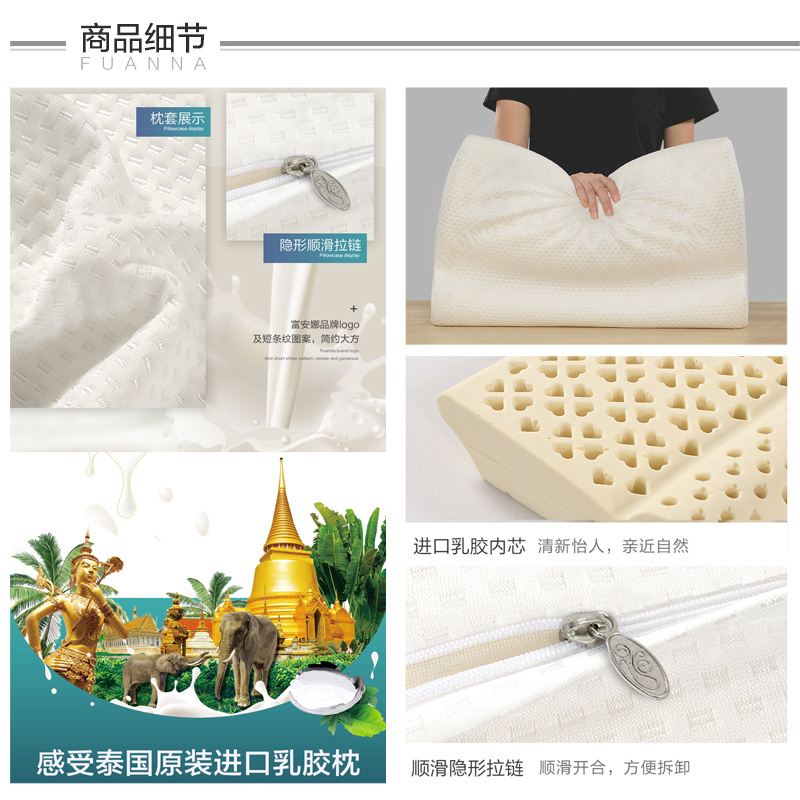泰国原装进口芯研护颈乳胶枕(枕芯1只)【面料:聚酯纤维;填充物:聚异戊二烯(进口乳胶)/白】 |