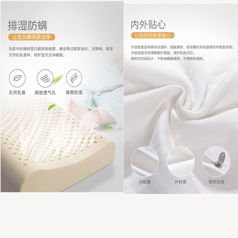 泰国进口瑞安儿童乳胶枕(单只装)【面料:纯棉夹丝布;填充:乳胶/白】 |
