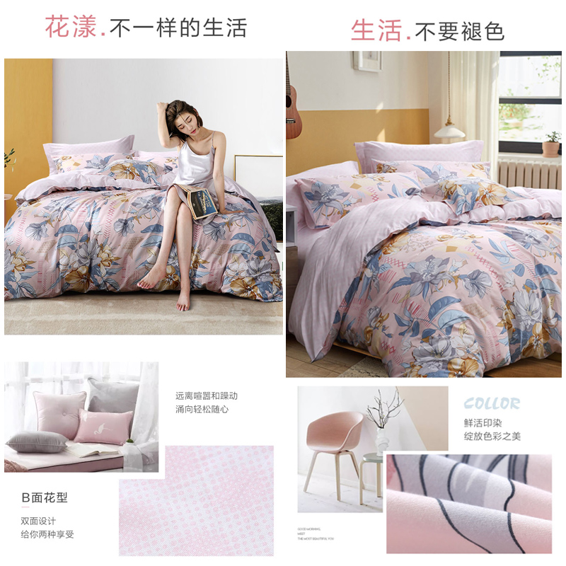 春日初妆 床单四件套(被套1件床单1件枕套2件)(适合1.8米床)【纯棉/粉】 |