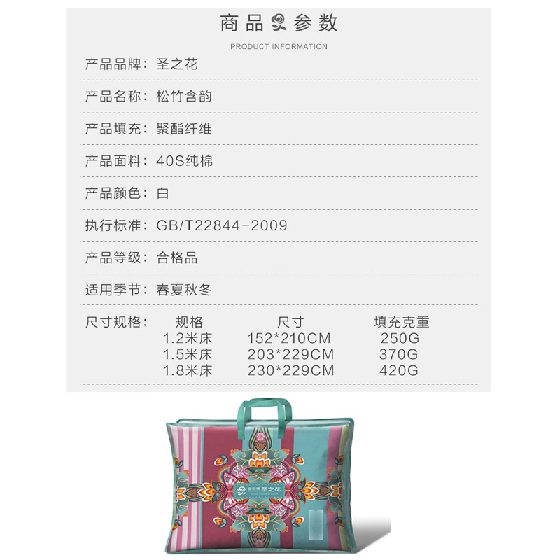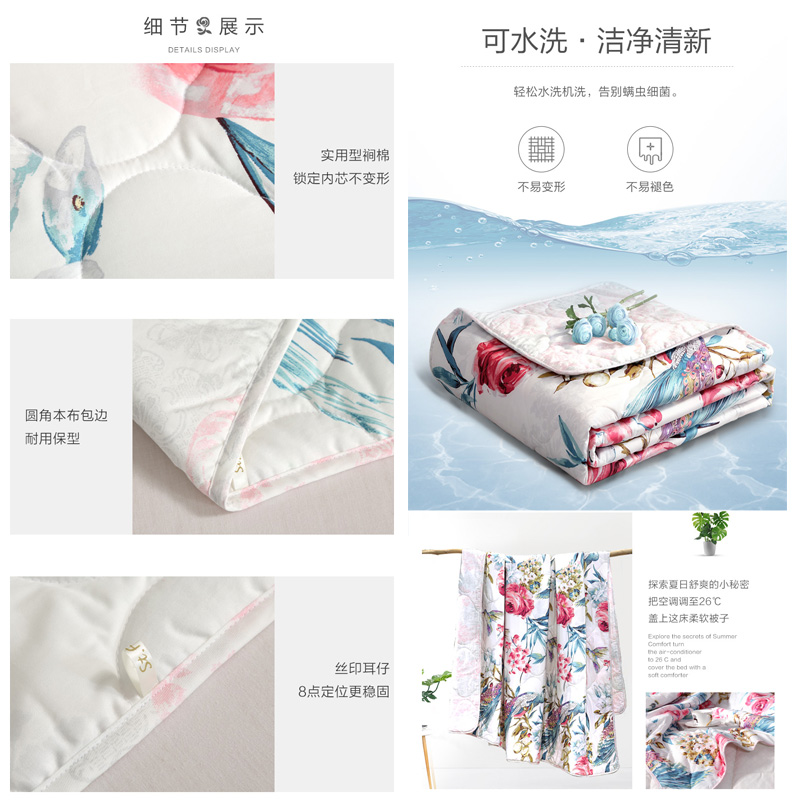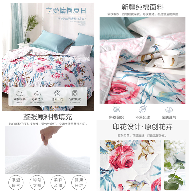 松竹含韵 纯棉印花夏被(被芯1件)(适合1.5米床)【面料:纯棉/白】 |