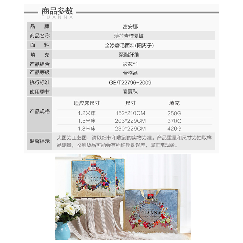 薄荷青柠夏被(被芯1件)(适合1.5米床)【面料:聚酯纤维(阳离子);填充:聚酯纤维/绿色】 |
