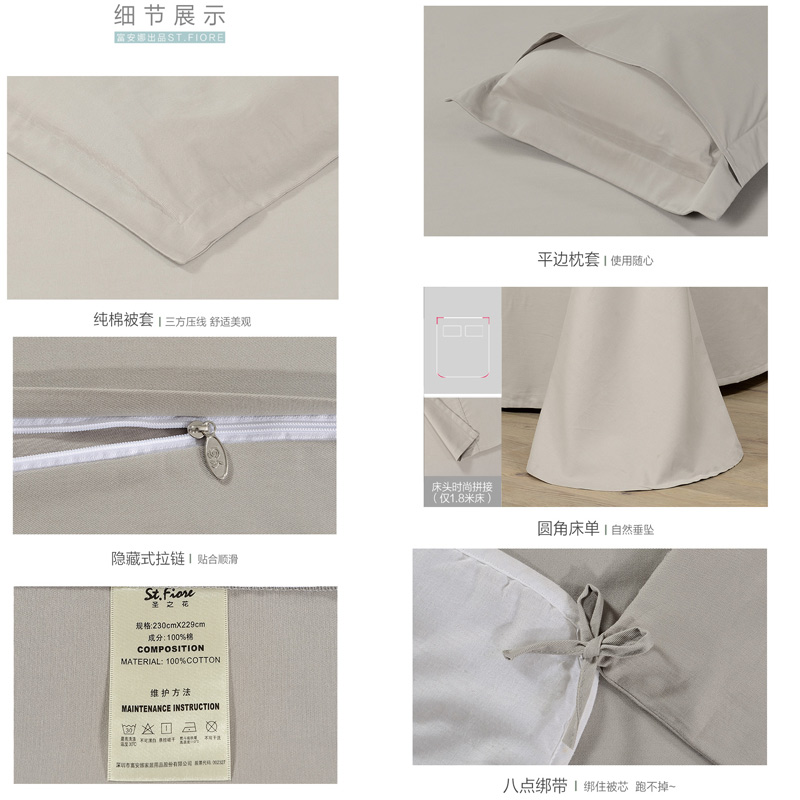 安之若素 床单四件套(被套1件床单1件枕套2件)(适合1.5米床)【纯棉缎纹/浅咖】 |