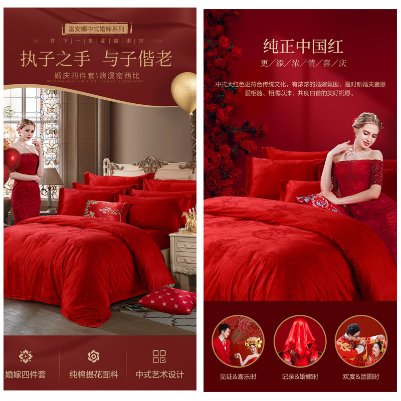 浪漫密西比 床单四件套(被套1件床单1件枕套2件)(适合1.5米床)【纯棉提花/红】 |
