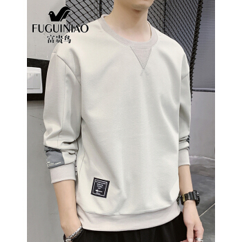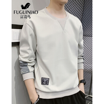 富贵鸟卫衣男圆领秋季新款韩版潮流男士长袖T恤休闲秋装上衣 灰色 4XL |