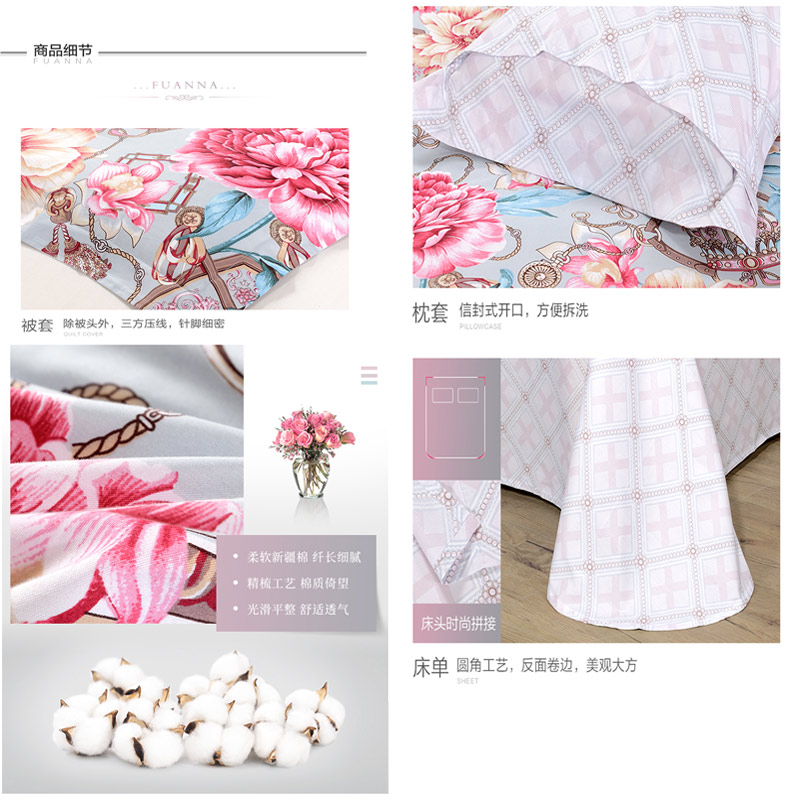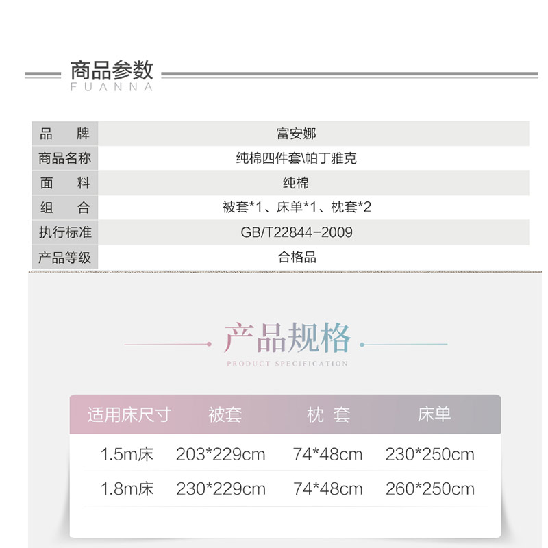 帕丁雅克 床单四件套(被套1件床单1件枕套2件)(适合1.5米床)【40支纯棉/花色】 |