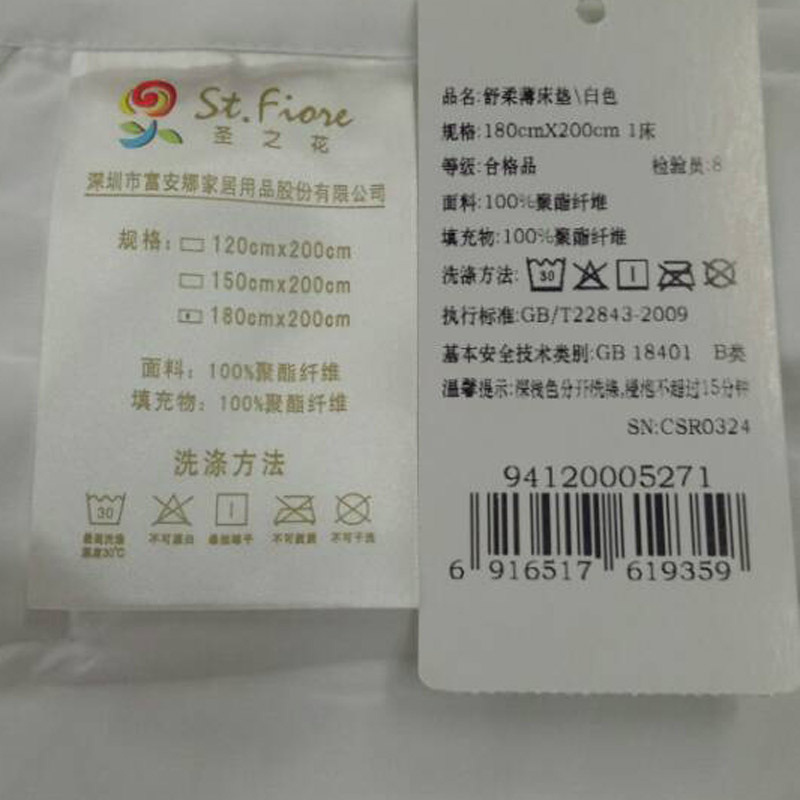 舒柔薄床垫(适用1.8米床)(薄床垫1件)【聚酯纤维/白】 |