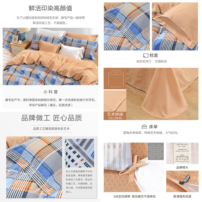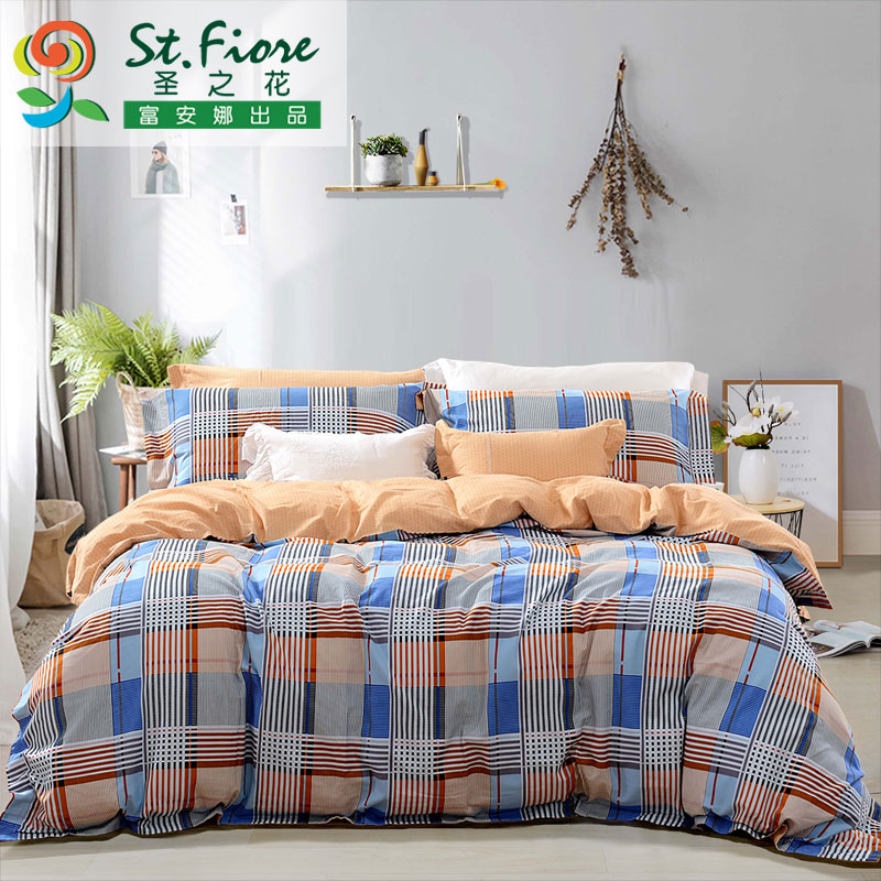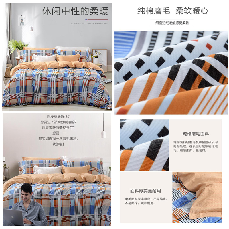 蓝调轻吟 床单四件套(被套1件床单1件枕套2件)(适合1.8米床)【纯棉磨毛/蓝】 |