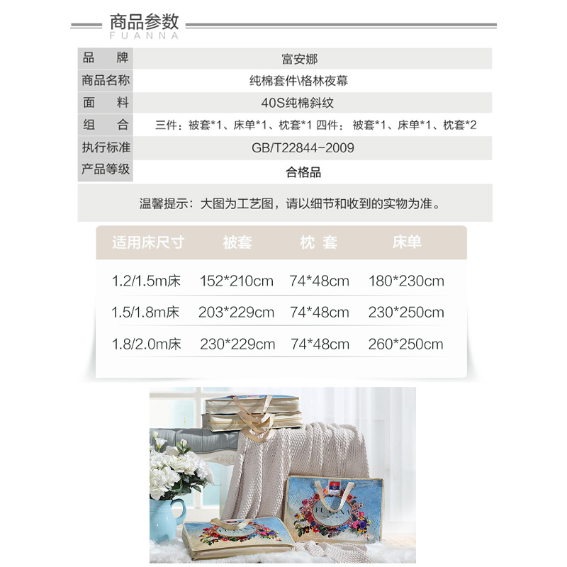 格林夜幕 床单三件套(被套1件床单1件枕套1件)(适合1.2米床)【纯棉/黄】 |