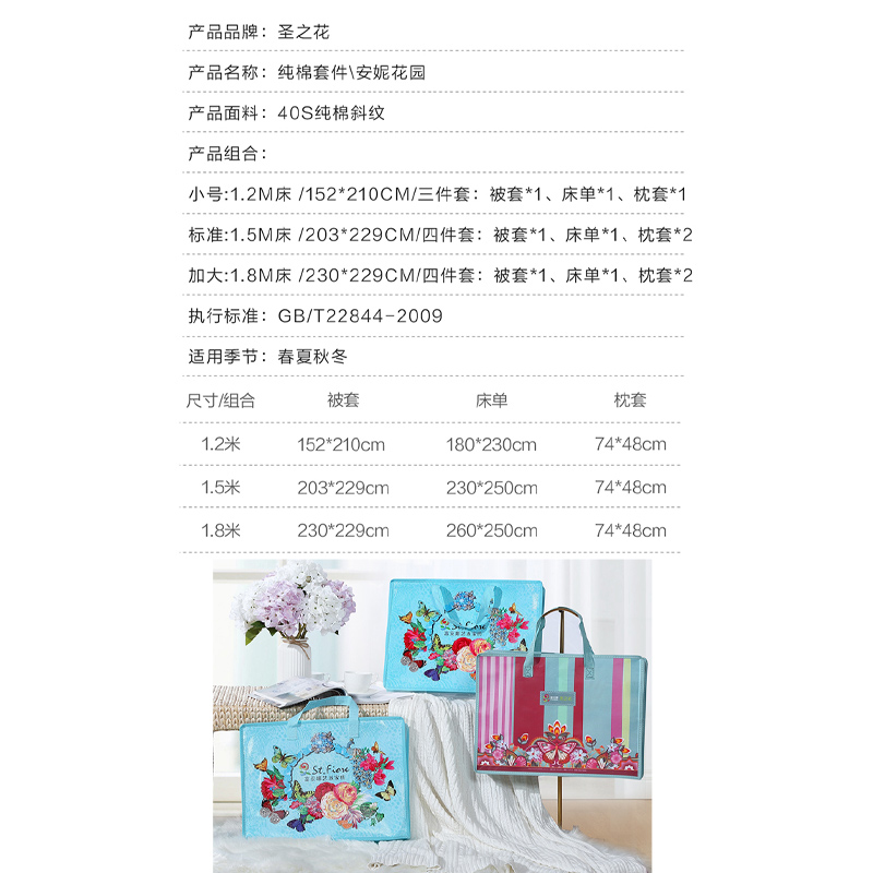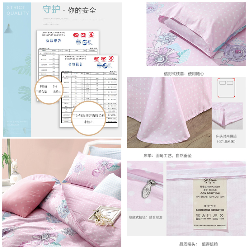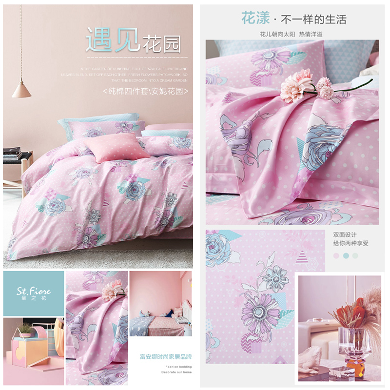 安妮花园 床单三件套(被套1件床单1件枕套1件)(适合1.2米床)【纯棉/粉】 |
