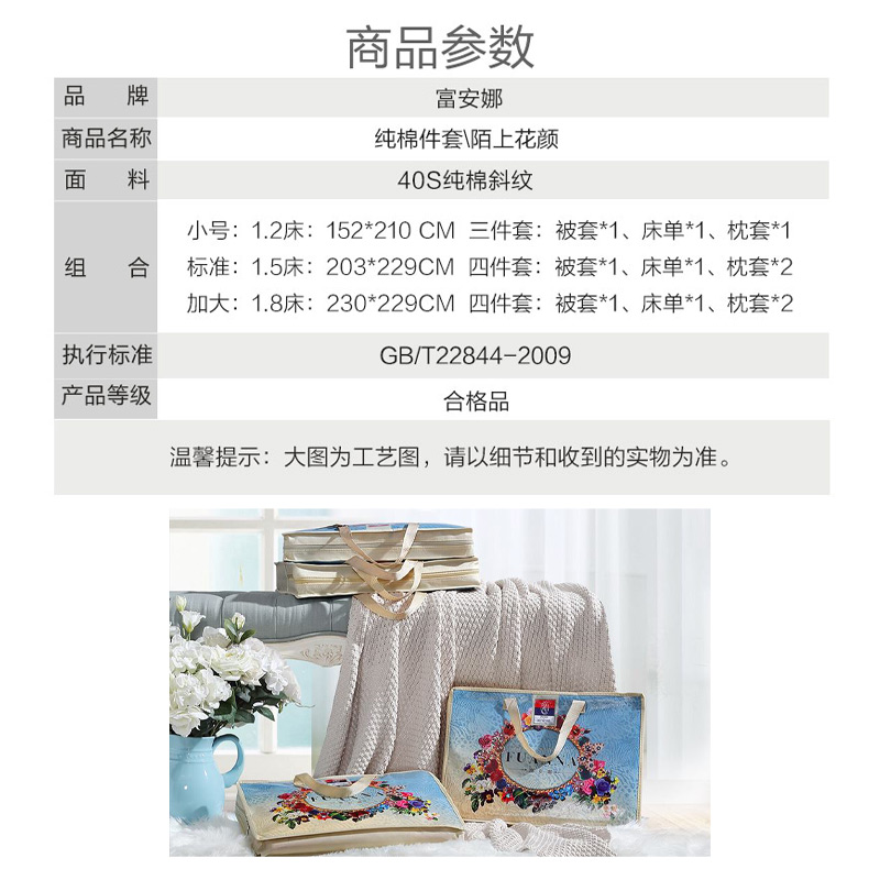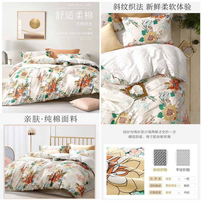 陌上花颜 床单四件套(被套1件床单1件枕套2件)(适合1.8米床)【纯棉/黄】 |