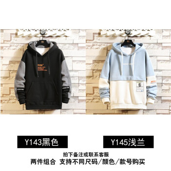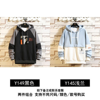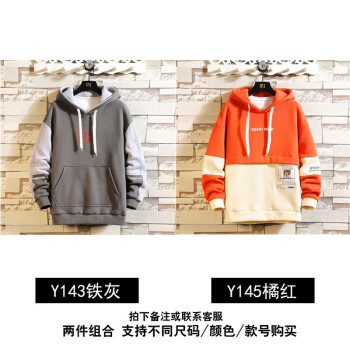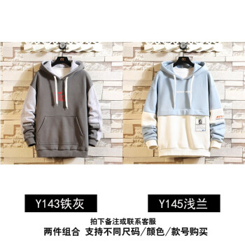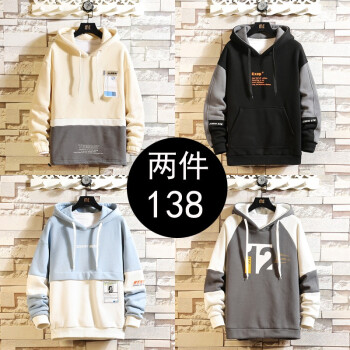 【两件装】慕林初客卫衣男春秋季韩版潮流休闲运动衣服青年学生带帽衫男士连帽上衣男装宽松秋装加绒加厚外套 Y136米色+Y149铁灰 XL |