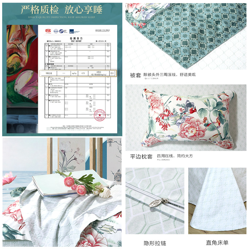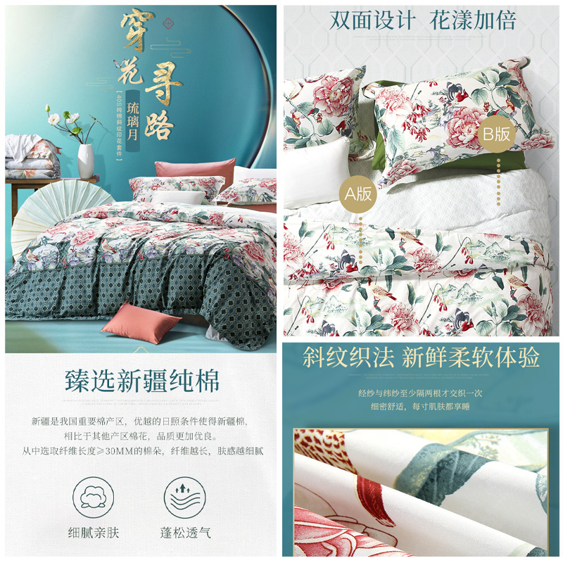 琉璃月 床单四件套(被套1件床单1件枕套2件)(适合1.5米床)【纯棉/深绿】 |