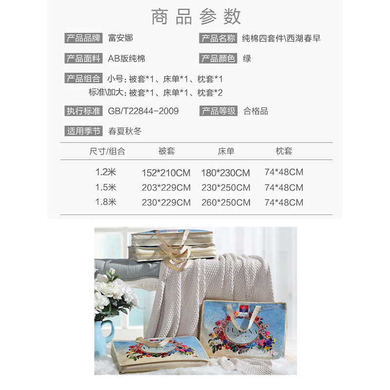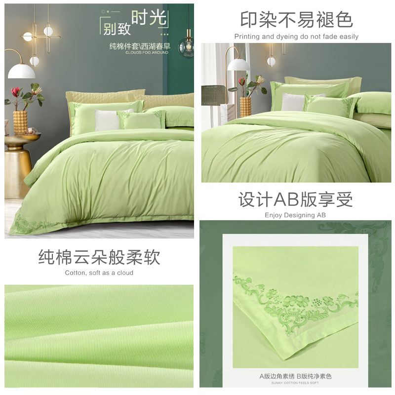 西湖早春 床单四件套(被套1件床单1件枕套2件)(适合1.8米床)【纯棉/绿】 |