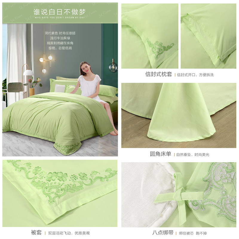 西湖早春 床单三件套(被套1件床单1件枕套1件)(适合1.2米床)【纯棉/绿】 |