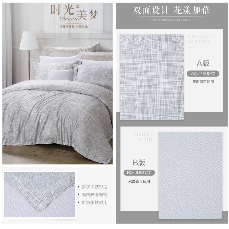 一曦时光 床单四件套(被套1件床单1件枕套2件)(适合1.5米床)【纯棉/蓝】 |