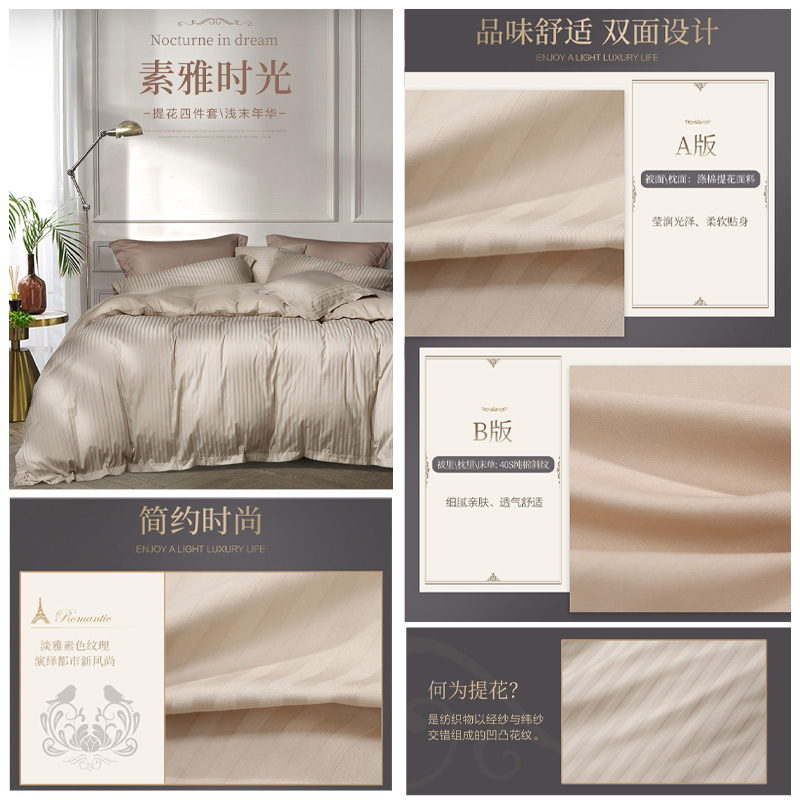 浅末年华 床单四件套(被套1件床单1件枕套2件)(适合1.5米床)【A版:涤棉提花;B版:纯棉/咖啡】 |