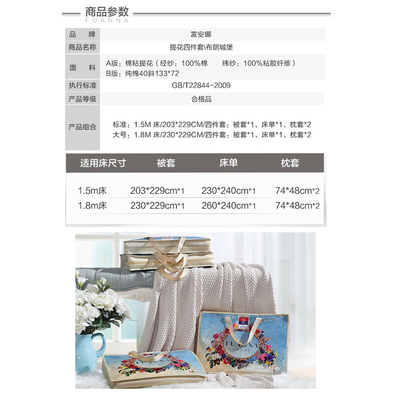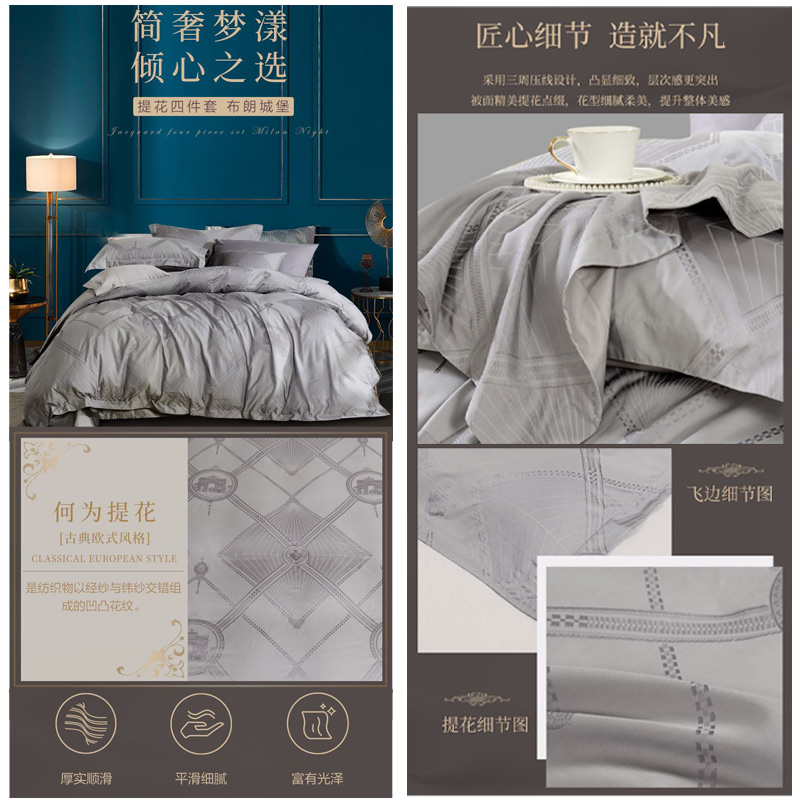 布朗城堡 床单四件套(被套1件床单1件枕套2件)(适合1.5米床)【A版:棉粘提花;B版:纯棉/灰】 |